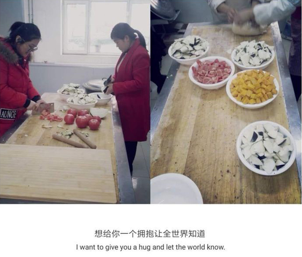 大家伙共同布置我們的會場,貼福字,掛條幅,換桌布,有些同事自己從家里拿案板與廚具。四星也是我們的家。