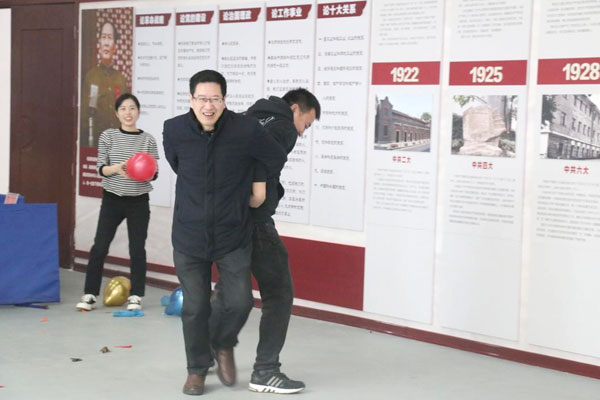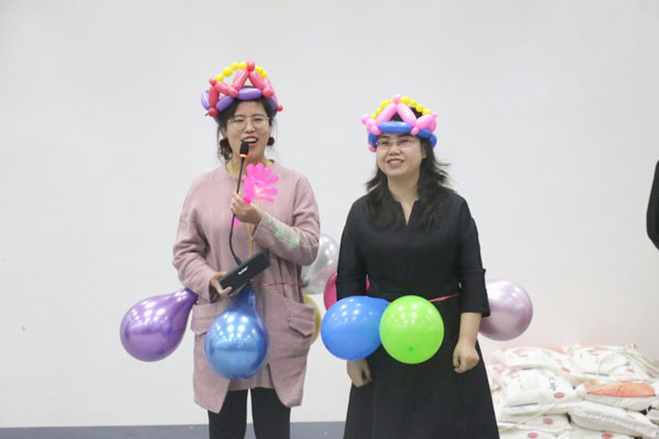 還有我們充滿趣味性的雙人背靠背夾氣球互動(dòng)游戲,兩位美女主持人熱情洋溢,朝氣蓬勃,得到了員工一致性好評(píng)。