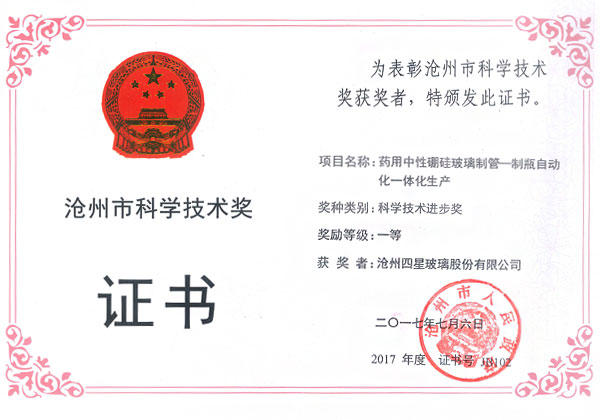 滄州四星玻璃股份有限公司榮獲河北省科學(xué)技術(shù)獎(jiǎng)